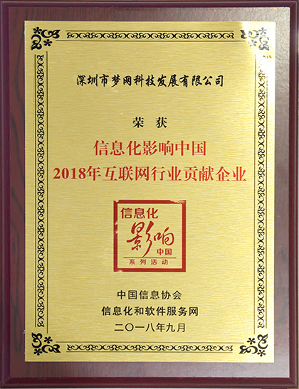 信息化影響中國 - 2018互聯(lián)網(wǎng)行業(yè)貢獻企業(yè)證書