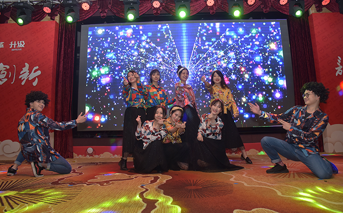 今年新增的特色環(huán)節(jié)“高管互動”是晚會的一大亮點。主持人邀請主桌上10位高管上臺念繞口令,場下笑聲掌聲不斷。最后,以余董事長、黃總、田總、李總、靳總為一組的獲勝隊伍爭奪到了在臺上獻唱一曲的“獎勵”。高管們一邊唱著《朋友》,一邊互相用手搭著肩膀,儼然是一隊“一生一起走”的戰(zhàn)友,志氣昂揚,著實讓現(xiàn)場同事動容。隨后,小品、合唱、人屏互動秀、串燒、走秀,一個個精彩的節(jié)目將現(xiàn)場氣氛一次又一次的推向高潮。創(chuàng)意3D人屏互動秀《火力全開》中,研發(fā)院的李佩杰將公司的戰(zhàn)略主題“創(chuàng)新·變革·升級”以一種嶄新的形式動感呈現(xiàn);華南營銷中心的小品《網(wǎng)紅大賽》傳播社會正能量,弘揚正確價值觀,同事們的反串表演也讓大家眼前一亮;還有唱歌表演《青花瓷》、《High歌》、《風吹麥浪》等,放飛夢網(wǎng)人的思緒,讓大家提前感受到迎新春的歡快氣氛;《The Lazy Song》、《夢網(wǎng)“舞”聯(lián)》等幾只舞蹈熱力四射,年輕的蓬勃朝氣洋溢會場;小品《辦公室風波》用笑聲和包袱讓大家釋放青春的煩惱。更有強軍戰(zhàn)歌表演——《咱夢網(wǎng)的人》,各站區(qū)代表穿上軍裝,昂首挺胸,代表著拼搏決心與毅力的口號響徹晚會會場。最后,歌舞節(jié)目《夢網(wǎng)怎么這么好看》奪得了今年優(yōu)秀節(jié)目評選特等獎的桂冠。歡快搞笑的表演,歡樂的豬年吉祥物代表,譜寫了對夢網(wǎng)“大志創(chuàng)新再展宏圖求突破,博采眾長納賢守信為騰飛”的美好祝愿——夢網(wǎng)就是這么好看!