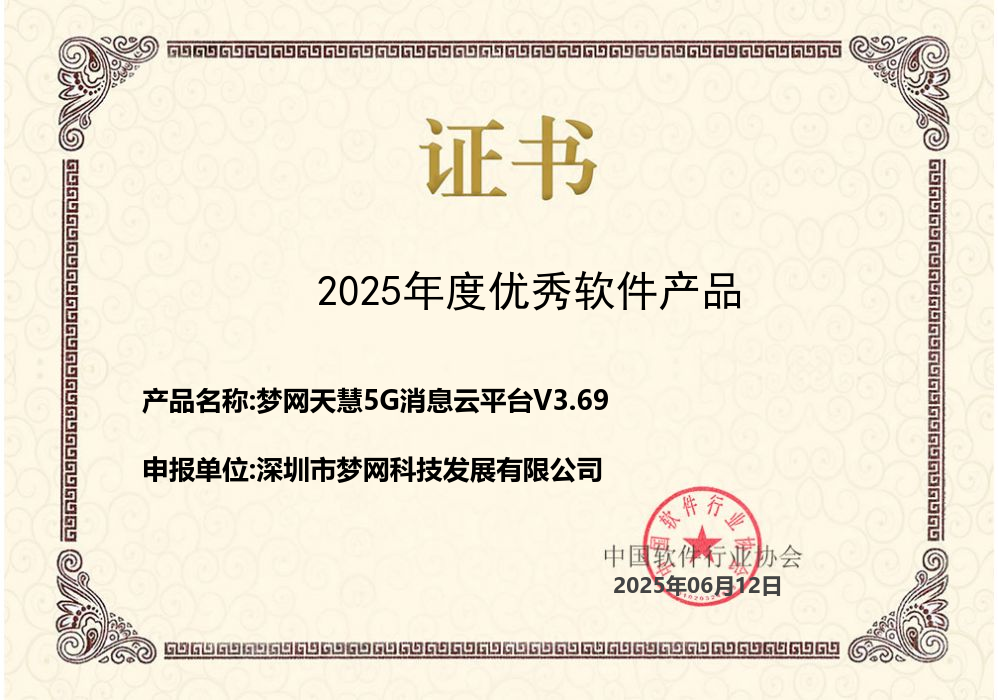 近日,夢網(wǎng)科技旗下夢網(wǎng)天慧5G消息云平臺(tái)憑借卓越性能與廣泛應(yīng)用價(jià)值,榮獲中國軟件行業(yè)協(xié)會(huì)頒發(fā)的“2025年度優(yōu)秀軟件產(chǎn)品”獎(jiǎng)項(xiàng)。