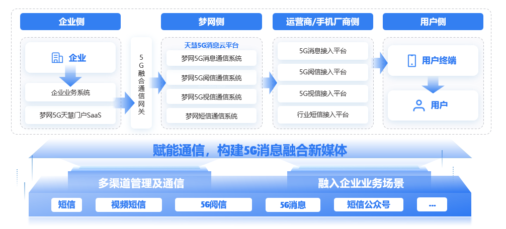 夢網(wǎng)天慧5G消息云平臺(tái)基于全球移動(dòng)通信協(xié)會(huì)RCS和UP標(biāo)準(zhǔn)進(jìn)行構(gòu)建,并引入了MaaP技術(shù),成功實(shí)現(xiàn)了消息的多媒體化、輕量化和交互化。通過不斷的創(chuàng)新與優(yōu)化,該平臺(tái)為企業(yè)和用戶構(gòu)建了一種全新的人機(jī)交互模式,使得用戶能夠在消息窗口內(nèi)輕松完成服務(wù)搜索、發(fā)現(xiàn)、交互以及支付等一站式操作,極大地提升了消息服務(wù)的整體效率和便捷性,滿足了用戶在數(shù)字化時(shí)代的溝通需求。