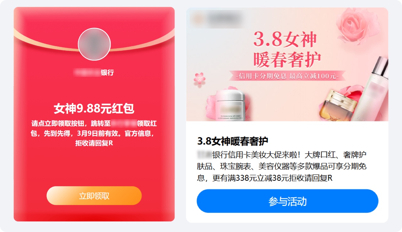 以金融行業(yè)為例,某銀行在節(jié)前向持卡人推送“女神節(jié)紅包”卡片,清晰展示品牌LOGO、紅包金額與“立即領(lǐng)取”按鈕,用戶點擊即可一鍵跳轉(zhuǎn)至手機銀行App參與活動。相比傳統(tǒng)短信需要復(fù)制鏈接、打開瀏覽器、登錄的冗長路徑,5G閱信的“一步直達”讓祝福即刻轉(zhuǎn)化為行動。